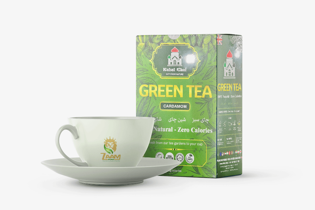 ZaamFarm Green Tea is a premium option with golden-green color, smooth taste, and natural freshness.